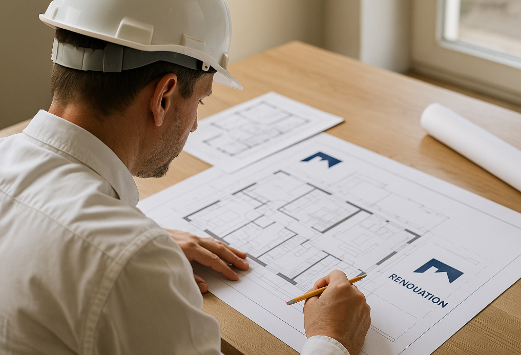 Un architecte ou expert en rénovation étudie votre projet de rénovation, notre expert en rénovation réalise un devis engageant et organise le chantier.